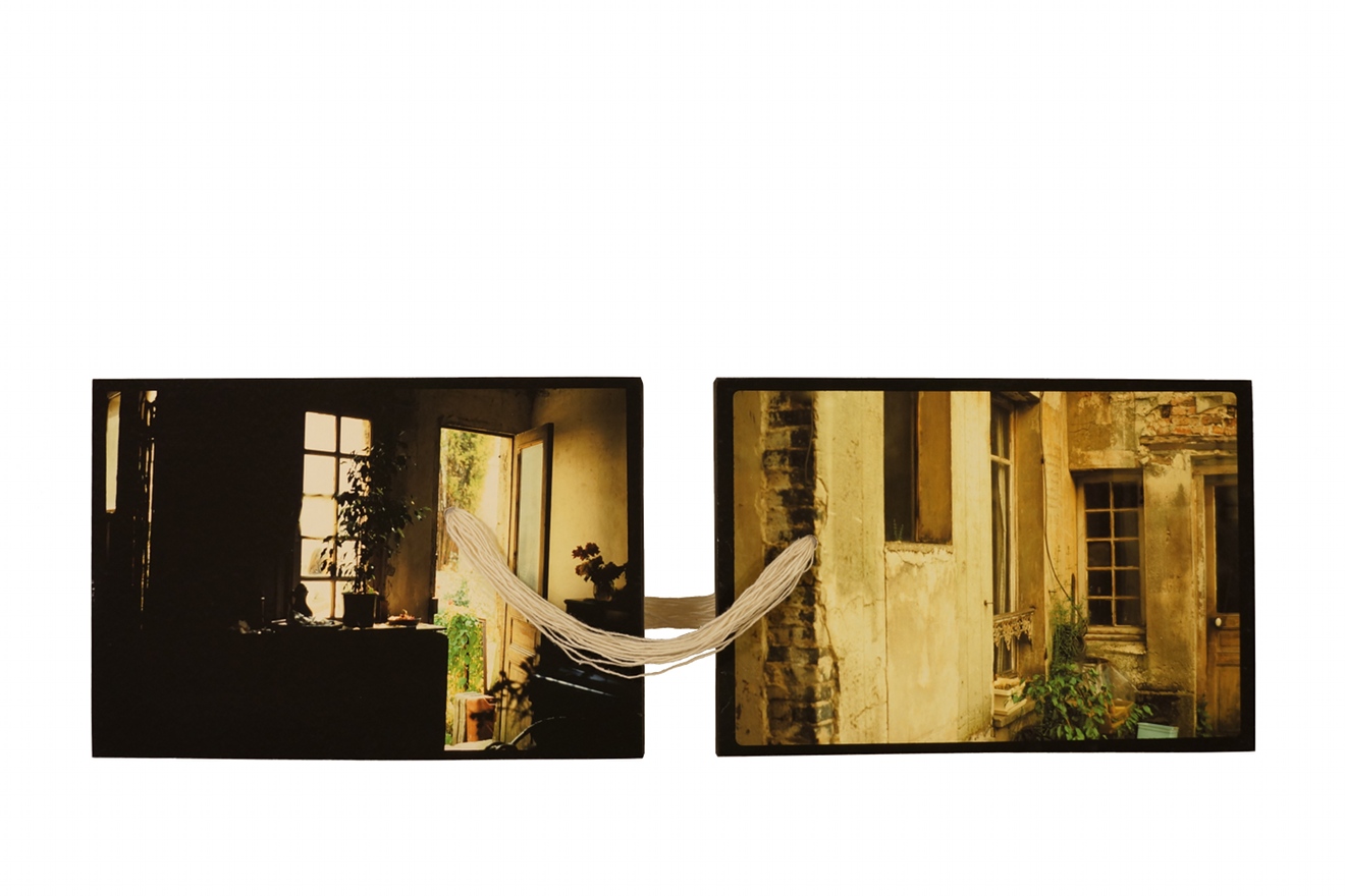 Matériaux : photographies, bois, corde naturelle, colle.